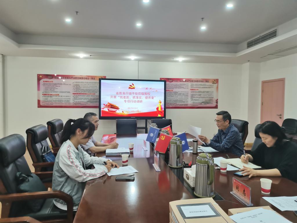 5月25日下午,省教育厅组干处副处长王树龙一行赴我校开展“找差距、抓落实、提质量”专项行动调研。校党委副书记吴长湖、党委委员、组织部长樊月琴及有关部门、二级学院党总支负责人参加调研会议。