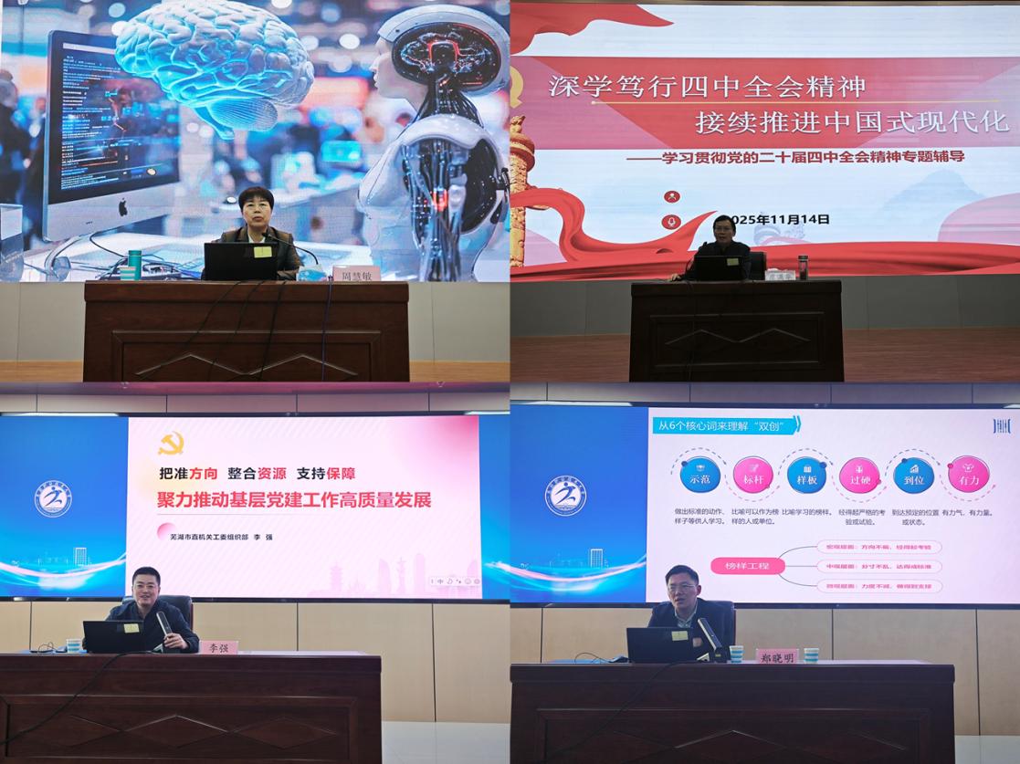 此次培训共分四期,旨在通过高规格、系统化的理论授课,打造一支政治坚定、业务精湛、作风过硬的党员队伍。此次培训聘请多位专家、教授,围绕《习近平谈治国理政》第五卷、党的二十届四中全会精神、基层党组织规范化建设、党建“双创”工作指引和中国共产党历史专题学习等内容进行集中授课。课程内容精准聚焦、理论深厚,帮助党员准确把握全面从严治党的新内涵新要求,引导党员夯实理论根基,强化纪律意识和规矩意识,坚定为党育人、为国育才的初心使命。