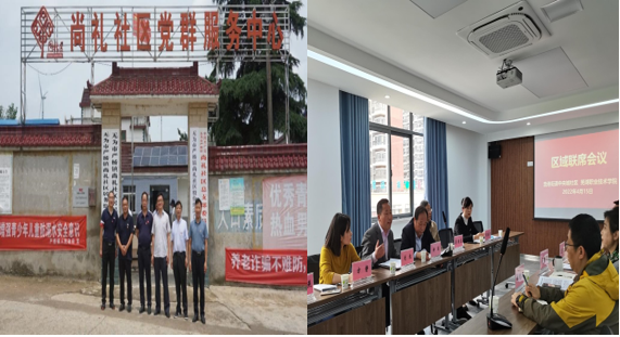 开展“红色共建”活动,构建党建共联共享格局。学校各级党组织与双联系村居、校企合作单位进一步加强沟通、联系,构建“组织共建、活动共联、资源共享、优势互补、共同提高”的开放型党建共联共享工作格局,全面助力乡村振兴、经济社会发展、产学研合作。2022年5月,学校领导班子成员带队走访双联系单位——鲁港街道中央城社区,了解社区物业治理等方面情况;7月,学校领导班子成员带队走访双联系单位——无为市严桥镇尚礼社区,慰问社区老党员、困难群众,捐赠了156套课桌椅。校党委副书记袁家和以“赓续红色血脉、谋振兴促发展”为主题为社区干部上了一堂生动的党课。