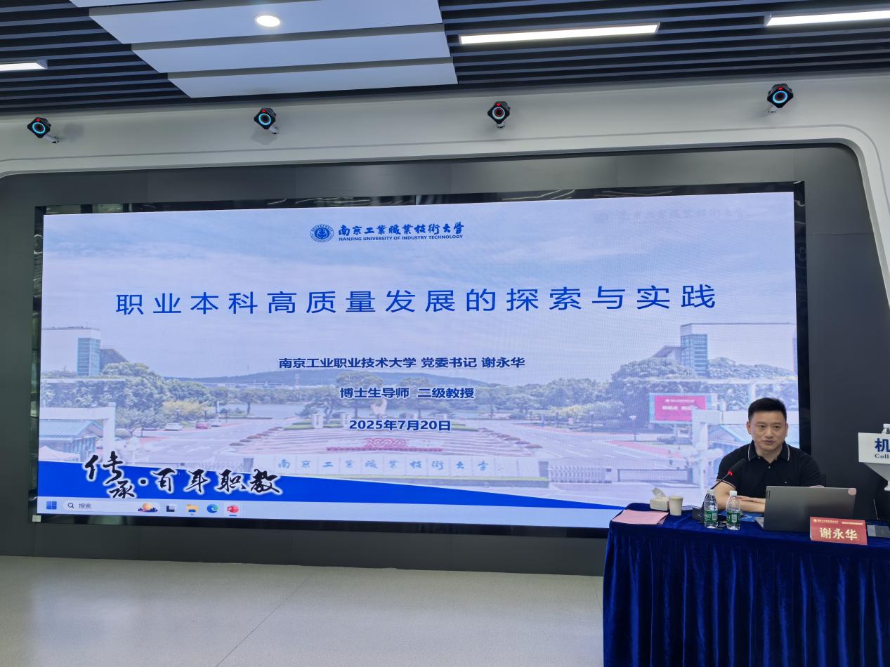 培训班邀请到了南京工业职业技术大学各方面的专家学者,为大家就职教本科、产教融合、专业群建设、人才培养与人才队伍建设、科研与社会服务等方面开展专业化、沉浸式的培训。谢永华围绕“新形势下职业教育改革创新探索与实践”作专题报告,全面分析了职业教育发展的机遇与挑战,深入阐述了改革的路径与方法,为学员们提供了新思路、新启发;南京工业职业技术大学党委原书记、研究员吴学敏就职业本科专业人才培养及人才队伍建设的创新与实践与学员进行探讨交流;计算机与软件学院院长胡光永教授从专业内涵发展的视角,介绍市域产教联合体建设导向下的产教融合、应用科研与反哺教学的具体实践;经济管理学院党委书记殷红卫教授作了题为《职业教育本科专业建设的探索与实践》的主题报告;南京信息职业技术学院科技处副处长顾振飞副教授分享了产教融合创新与发展背景下的高职人才培养模式改革与创新实践。