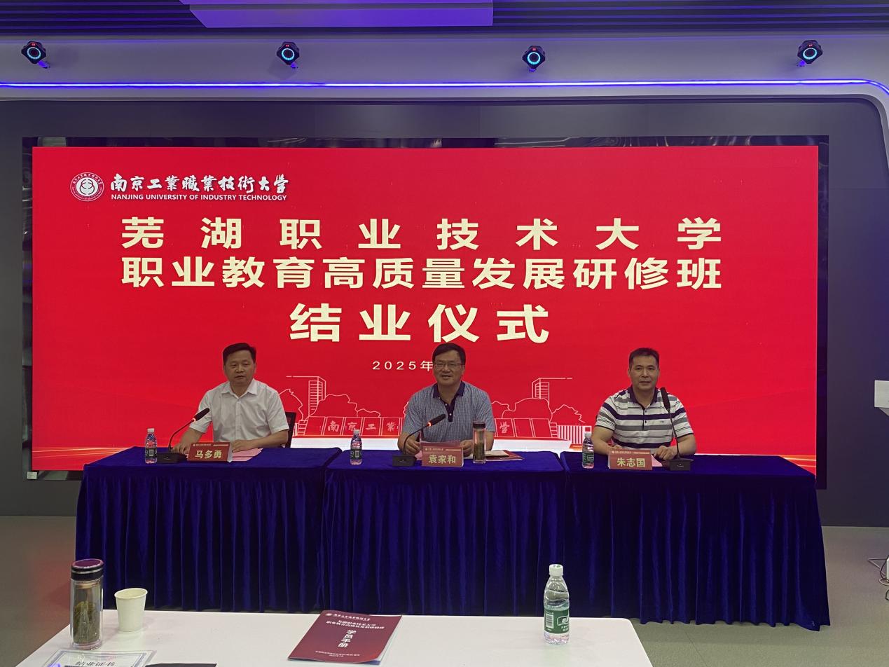 袁家和在结业仪式上代表学校向南京工业职业技术大学的各位领导、同仁和授课专家学者表示感谢,对参训学员积极表现给予肯定。他希望大家以此次研修为新起点,将所学的新理念、新方法、新技能运用到职教本科建设的各项工作中去,踔厉奋发,为芜湖职业技术大学的发展贡献力量,推动学校各项工作再上新台阶。(文、图/吴亚文 审/李冬生)