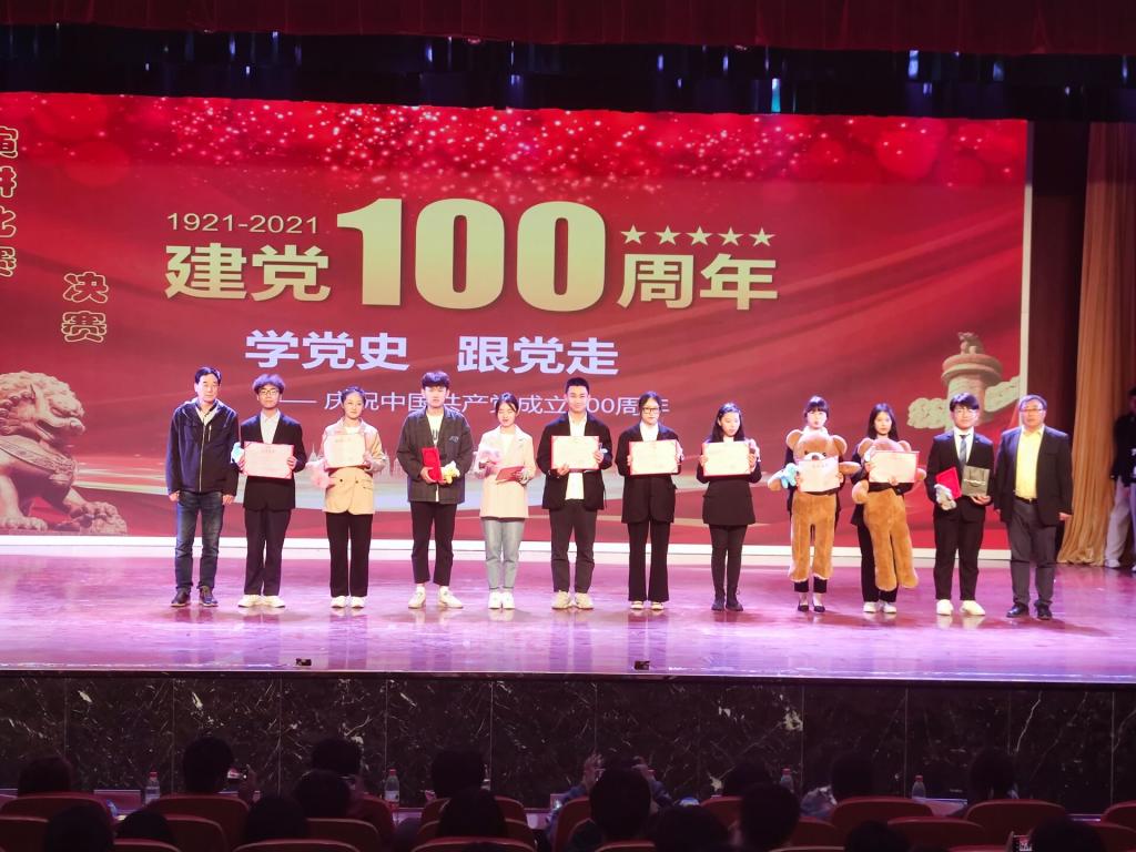 活动分四个环节:赛前赛后表演、参赛选手演讲、中场有奖问答、赛后点评颁奖。首先主持人开场致辞,在充满青春活力的舞蹈表演后比赛正式拉开帷幕,选手们信心满满地上台演讲,感情充沛、生动形象地演讲党的一百年来的光辉历程。活动中场短暂的有奖问答环节,观众们踊跃答题,收获颇丰。最后,张清友上台点评,肯定了同学们的精彩演讲,表达了对大家提高思想觉悟的殷切希望。经过激烈角逐,评委本着公平公正的原则选出一等奖1名、二等奖2名、三等奖3名、优秀奖4名。