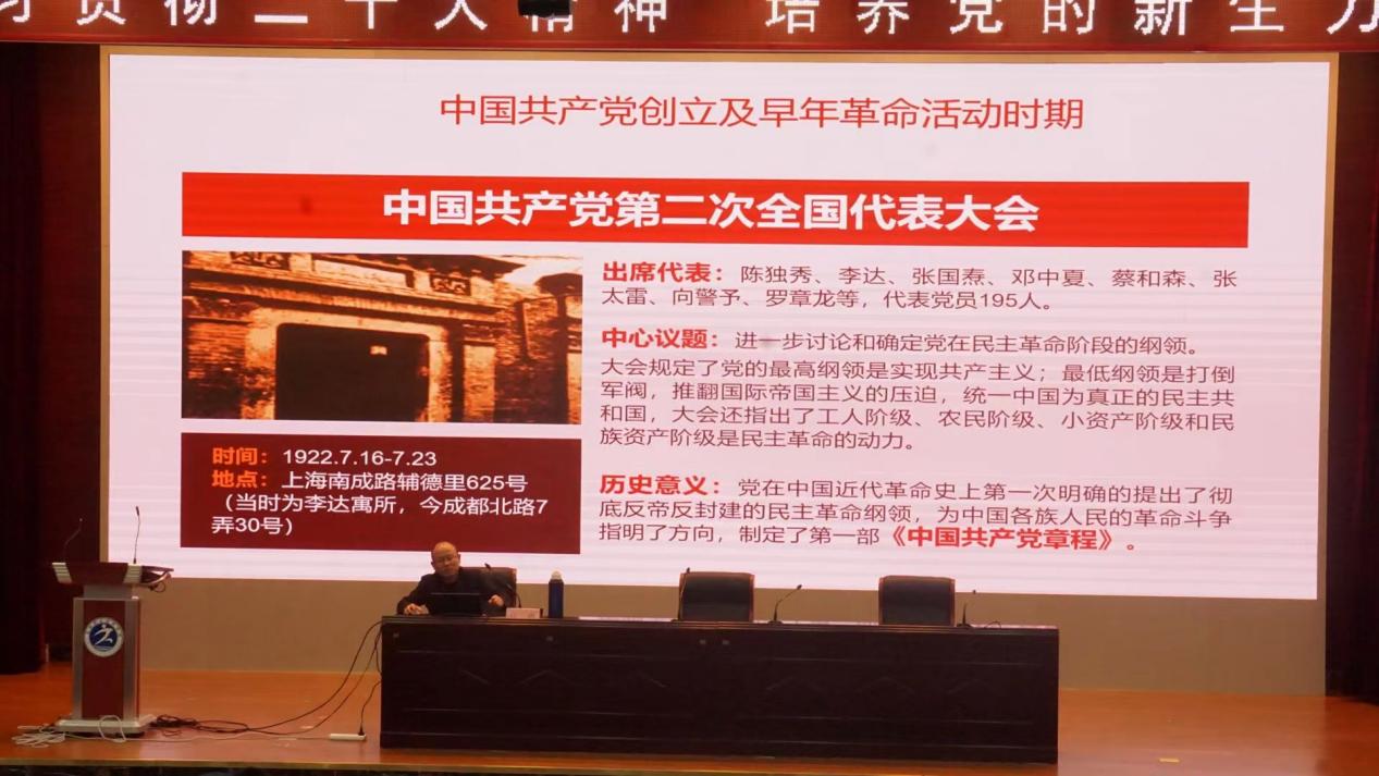 马克思主义学院副教授江南为学员们开展了题为《中共党史教育》的报告,他希望学员发扬马克思主义优良学风,用好党的红色资源,鼓励创作党史题材的作品和活动,发挥互联网在党史宣传中的重要作用。