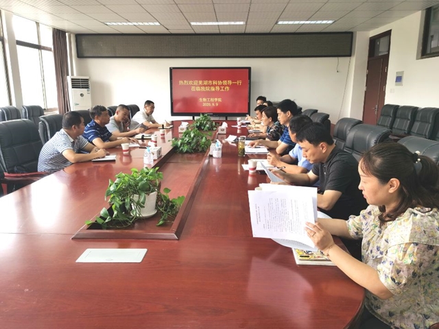 9月9日上午,芜湖市科协副主席邹维银一行4人来我校考察交流,副校长刘育红、科研处副处长吴庆国和生物工程学院党政班子成员、各教研室负责人参加了交流活动。